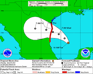 Aun estamos con los estragos del Huracán Alex y ya se envía una alerta para el Golfo de México de la ruta probable de la depresión tropical Bonnie la cual se dirige hacia Tamaulipas directamente.