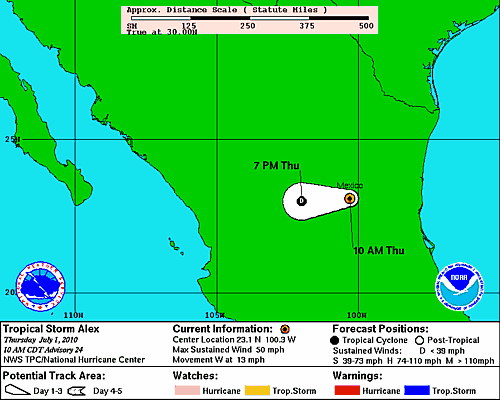 seguimiento oficial del Huracan Alex desde el Centro Nacional de Huracanes en Estados Unidos.
