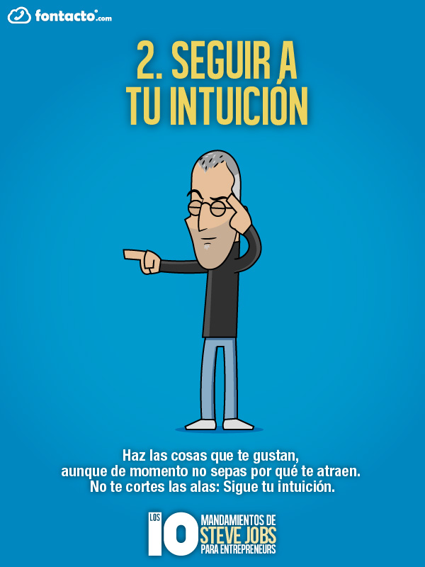Sigue a tu intuicion. el segundo pensamiento de Steve Jobs fue seguir su intuicion, quiero comentarles que su intuicion al menos estaba algo preparada o estudiada ya que Steve Jobs era practicante del Zen, Yoga y la meditación, el llego a conjugar dos áreas totalmente asincronicas como la tecnología las humanidades, así lo explica en su libro autobiográfico donde comenta sobre su firme convicción de dejar su huella en el universo.