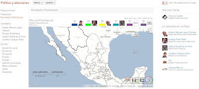 Google México.-Hoy te informo que el PREP del IFE sera difundido a través de Google México y por primera vez habrá una aplicacion para dar seguimiento a las estimaciones de las elecciones vía gadgets y smartphones como Blackberry, iPad, Android.