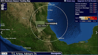 Gráfica entrada y seguimiento de la Tormenta tropical Arlene al estado de Veracruz, se pronostican lluvias en Tamaulipas para jueves y viernes bastante intensas en la región.